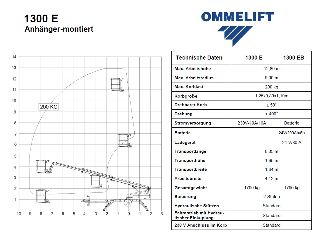 - Maximale Arbeitshöhe: 12,80 m