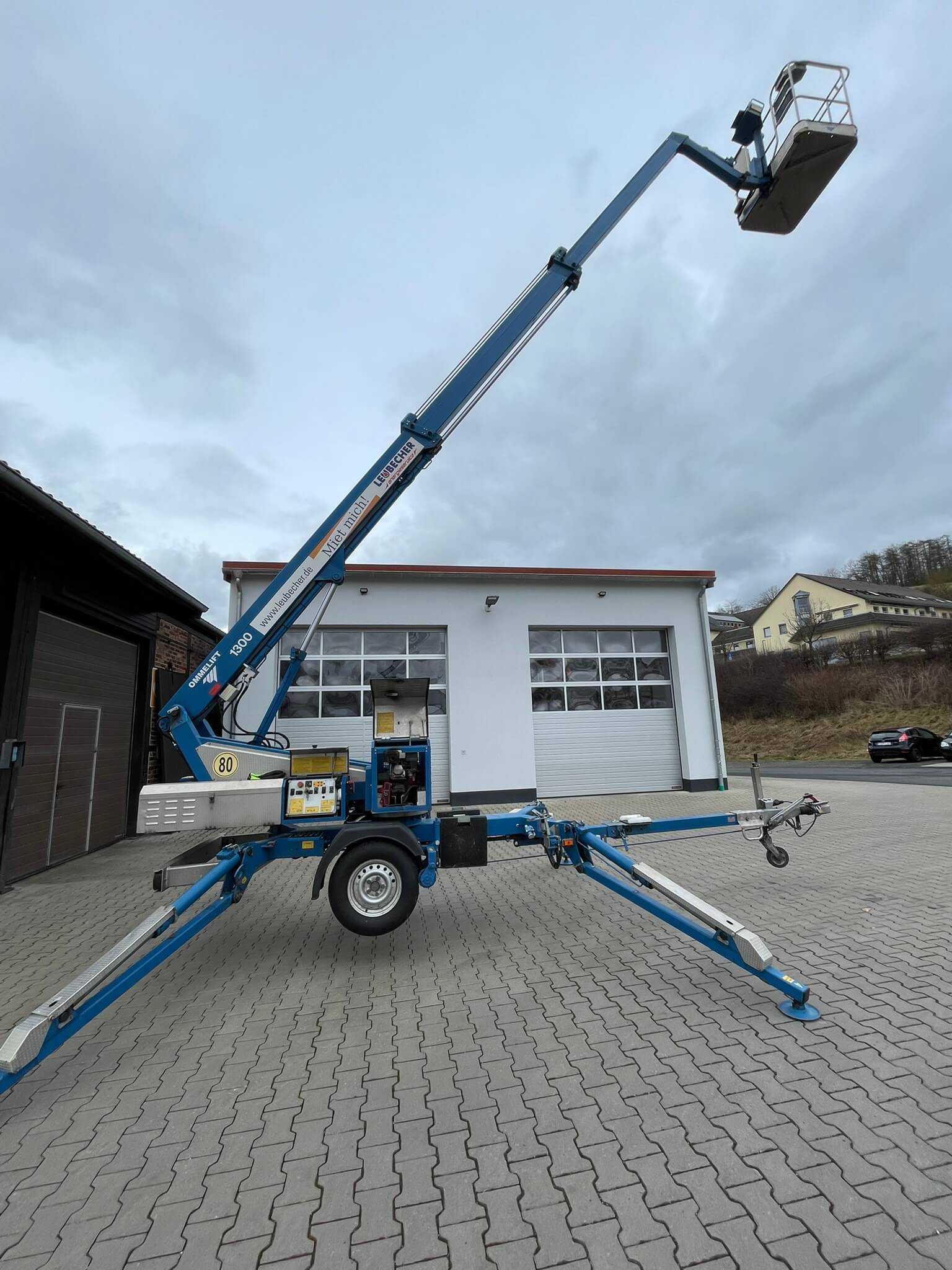 Ob Baumschnitt, Fassadenarbeiten oder Dachrinnenreinigung – mit unserer Anhängerarbeitsbühne erreichen Sie Höhen von bis zu 12,80 Metern. Mit einer Arbeitsbreite von 4,12 m bietet sie ausreichend Bewegungsfreiheit für vielseitige Einsätze – ideal für Arbeiten rund ums Haus, im Garten oder auf dem Betriebsgelände.